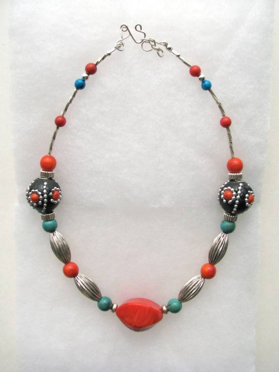 Bali silver focal bead, resin art beads from Europe, turquoise, Bali silver and sterling silver findings. |