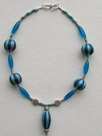 French silk-wrapped beads, vintage Czech glass, Bali silver, glass beads, sterling silver findings. |  |